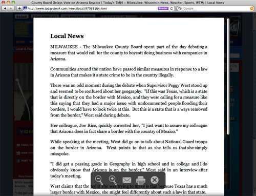 Once you click the Reader icon your screen will change to a much more reader friendly format where you can easily change the size of the font, and displays the text in black on a white background. It also removes all the clutter and allows you to focus on just the article.